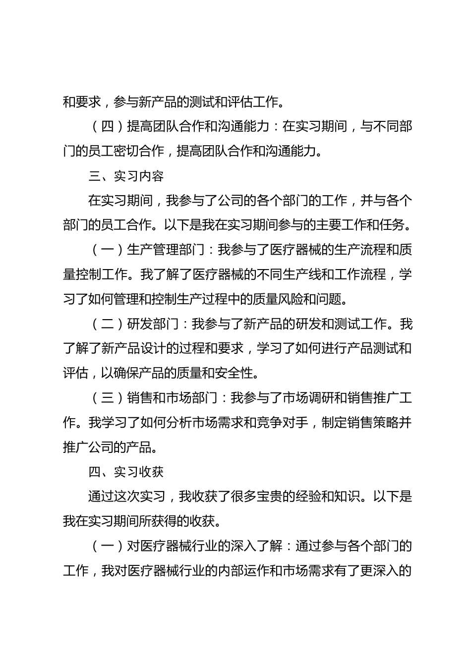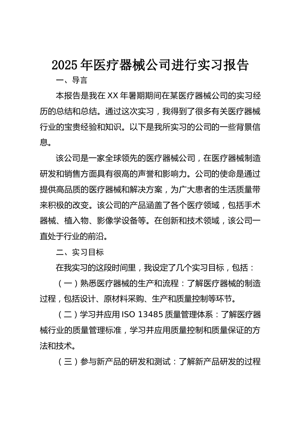 2025年醫(yī)療器械公司進(jìn)行實(shí)習(xí)報(bào)告