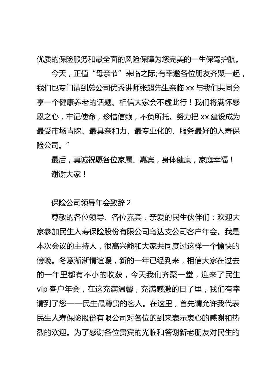 保險(xiǎn)公司領(lǐng)導(dǎo)年會(huì)致辭