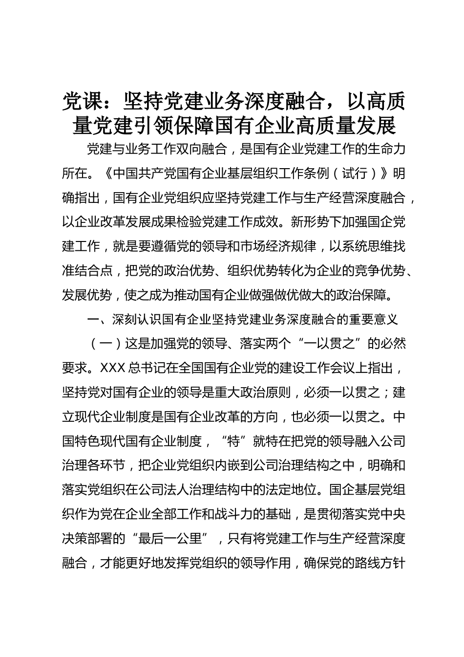 黨課:堅(jiān)持黨建業(yè)務(wù)深度融合,以高質(zhì)量黨建引領(lǐng)保障國(guó)有企業(yè)高質(zhì)量發(fā)展
