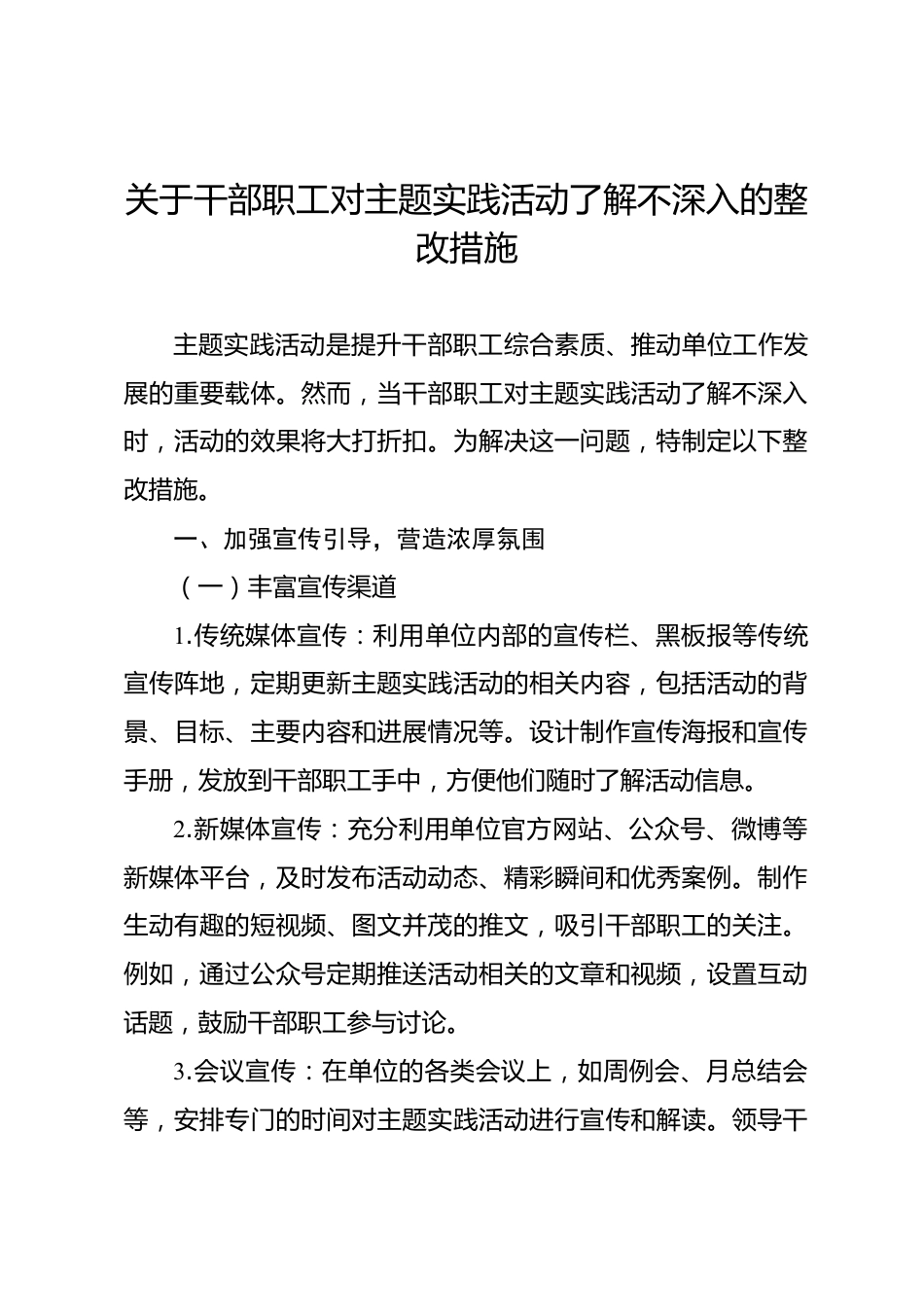 關(guān)于干部職工對主題實踐活動了解不深入的整改措施VIP免費