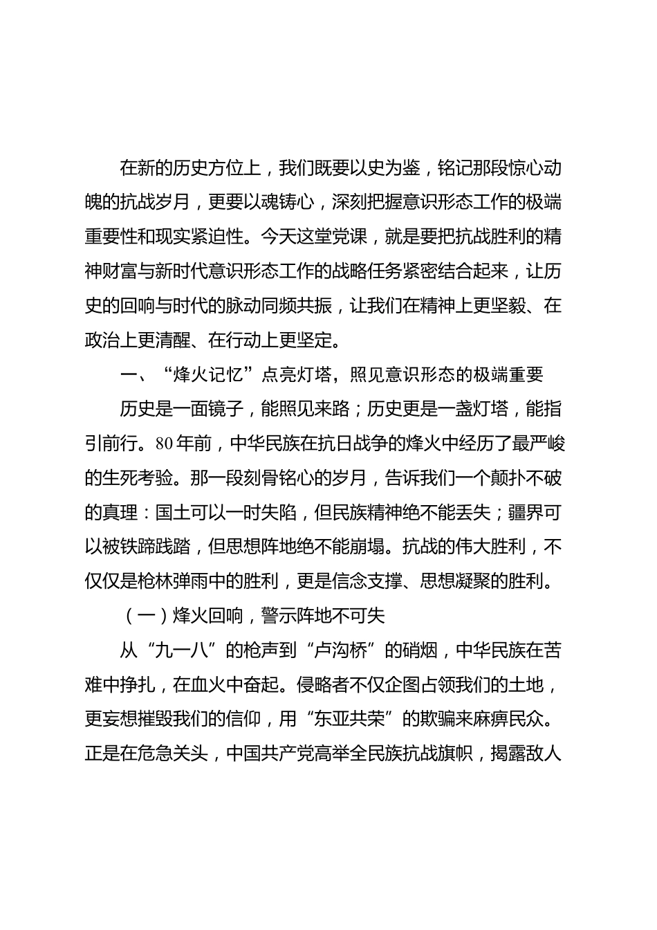2025年在紀(jì)念抗戰(zhàn)勝利80周年中深化意識形態(tài)工作的黨課講稿