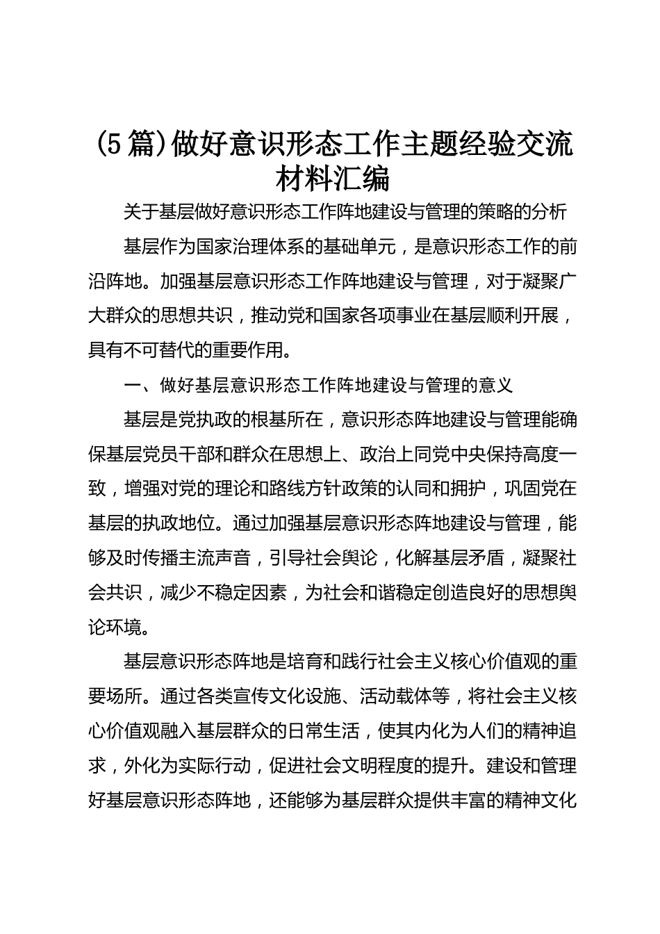 (5篇)做好意識形態(tài)工作主題經(jīng)驗(yàn)交流材料匯編