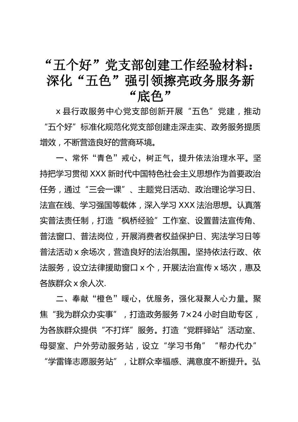 “五個好”黨支部創(chuàng)建工作經驗材料:深化“五色”強引領 擦亮政務服務新“底色”