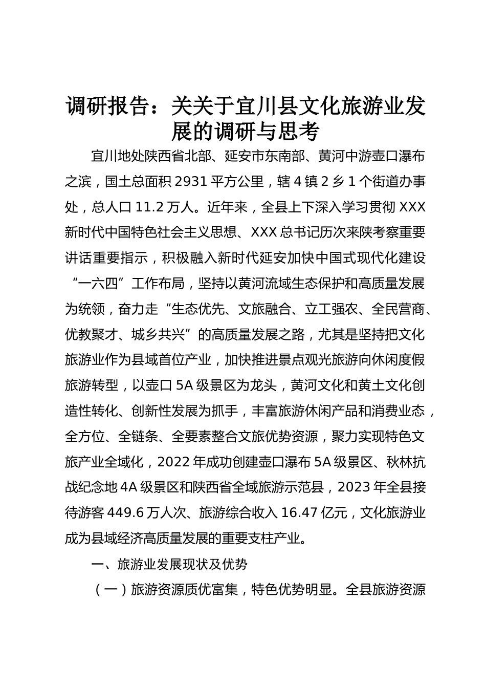 調(diào)研報告:關(guān)關(guān)于宜川縣文化旅游業(yè)發(fā)展的調(diào)研與思考