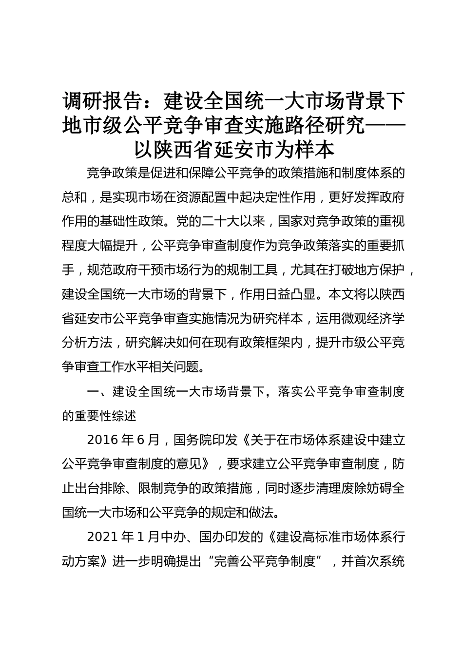 調(diào)研報告:建設(shè)全國統(tǒng)一大市場背景下 地市級公平競爭審查實施路徑研究——以陜西省延安市為樣本