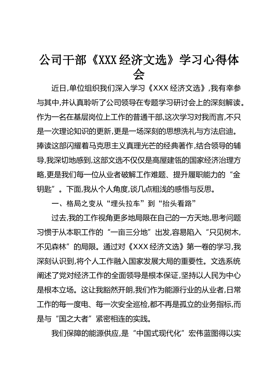 公司干部《習近平經(jīng)濟文選》學習心得體會VIP免費