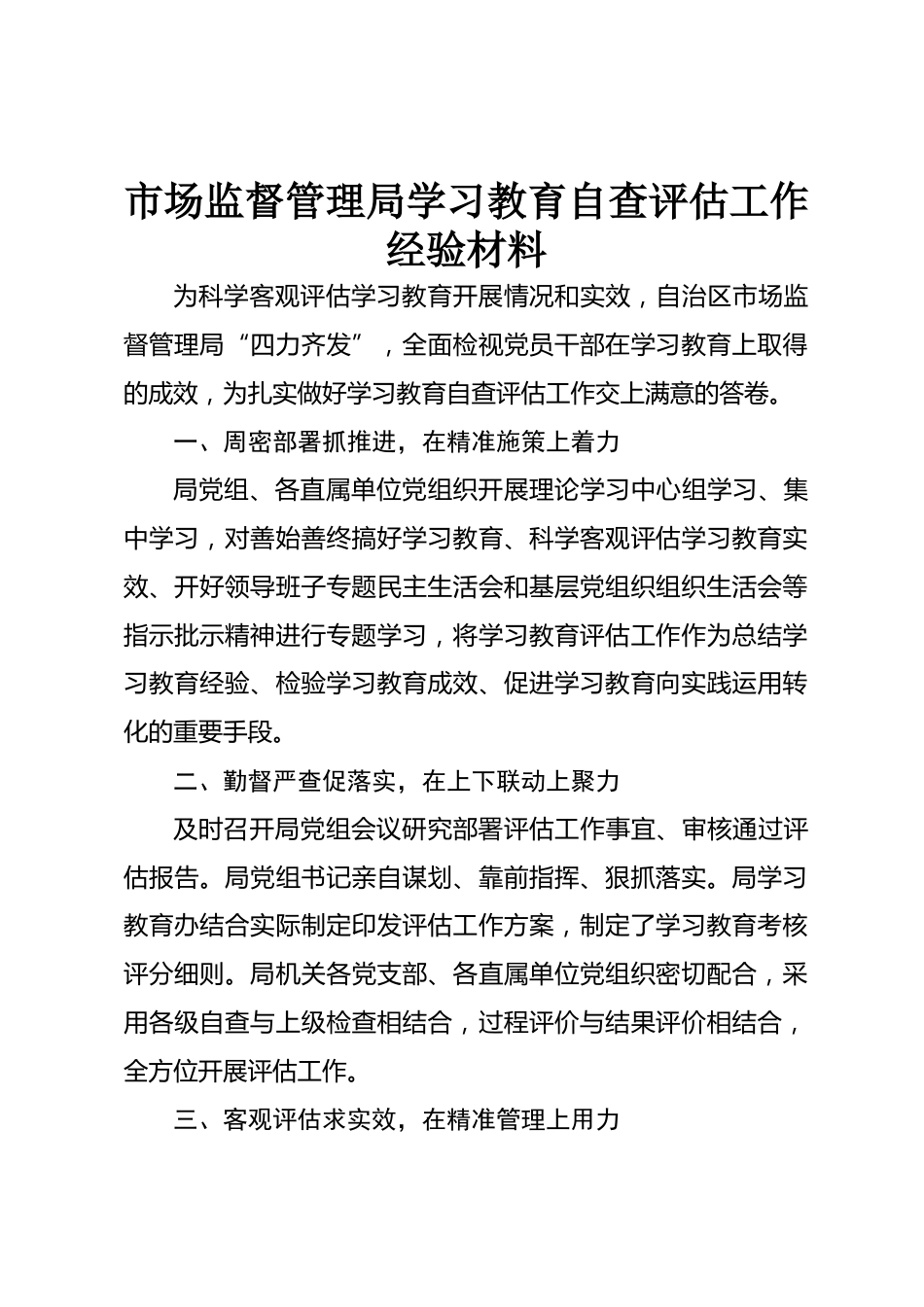 市場監(jiān)督管理局學(xué)習(xí)教育自查評估工作經(jīng)驗材料