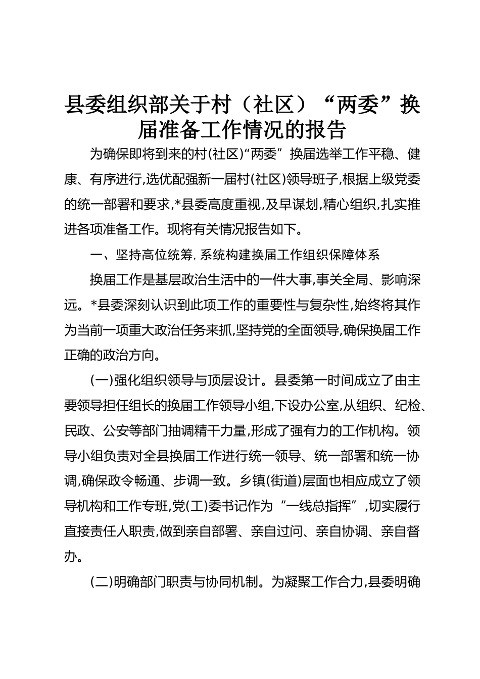 縣委組織部關(guān)于村(社區(qū))“兩委”換屆準(zhǔn)備工作情況的報(bào)告