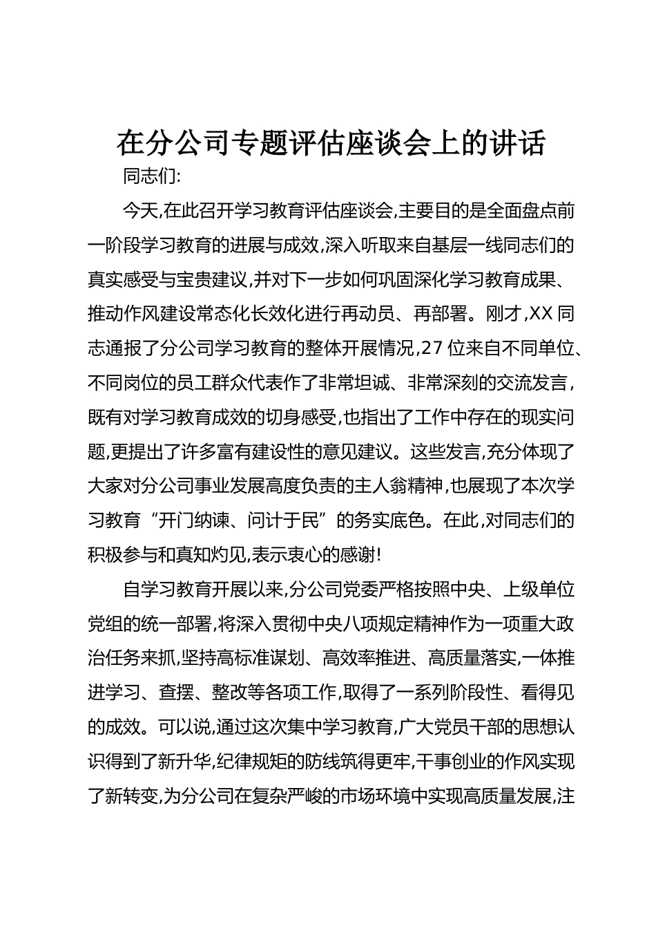 在分公司專(zhuān)題評(píng)估座談會(huì)上的講話