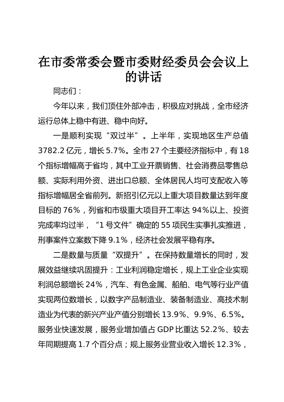 在市委常委會暨市委財經(jīng)委員會會議上的講話