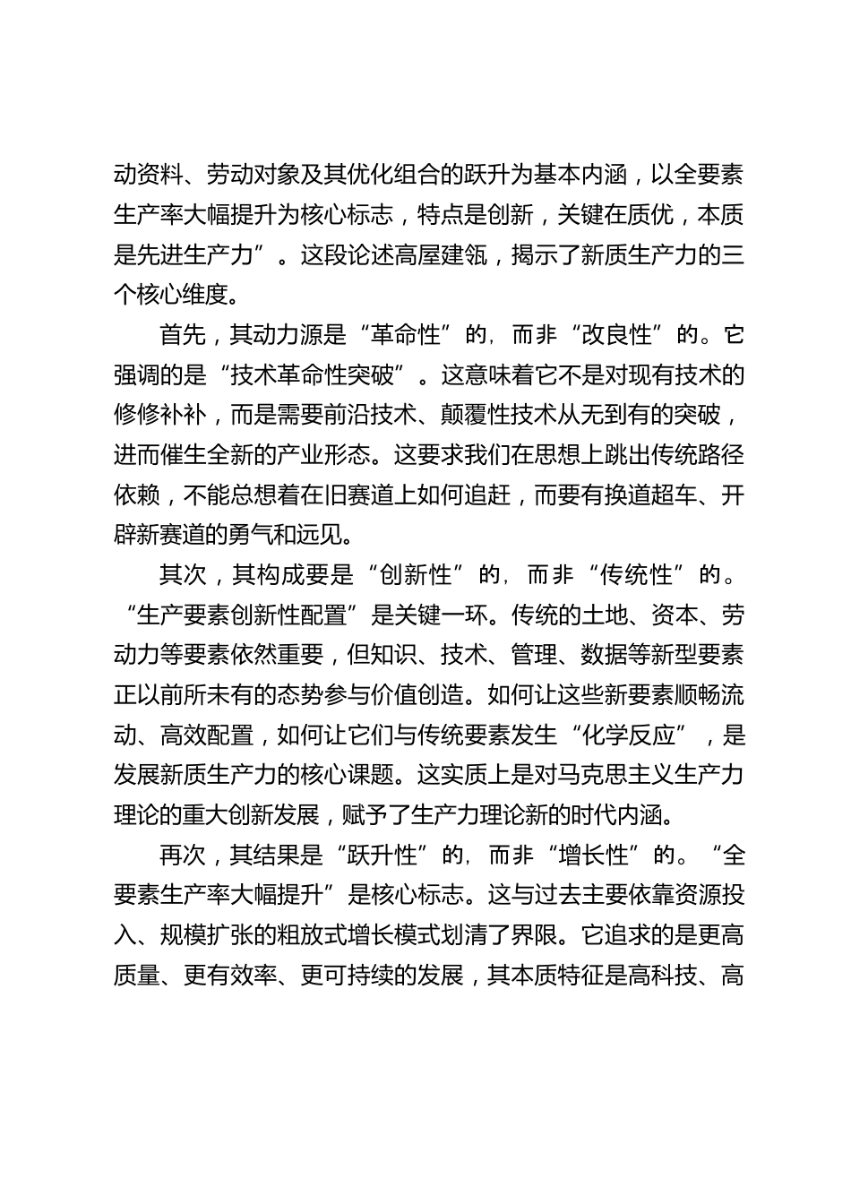 單位副職領(lǐng)導關(guān)于學習《XXX經(jīng)濟文選》的研討發(fā)言材料尊敬的XX書記,各位同事:根據(jù)會議安排,我就本次中心組學習《XXX經(jīng)濟文選》第一卷作個研討發(fā)言。剛才聽了XX書記的領(lǐng)學和幾位同事的分享,很受啟發(fā)。下面,我結(jié)合個人的一些學習思考,談幾點不成熟的體會,主要是聚焦“新質(zhì)生產(chǎn)力”這一核心概念,談一些感受、反思和方法上的探討,不當之處,請大家批評指正。這次區(qū)委常委會組織專題學習,恰逢其時,意義深遠?!禭XX經(jīng)濟文選》博大精深,是指導我們經(jīng)濟工作的強大思想武器。特別是其中關(guān)于“新質(zhì)生產(chǎn)力”的系述,我破統(tǒng)論為們解發(fā)展難題、厚植發(fā)展優(yōu)勢提供了根本遵循...