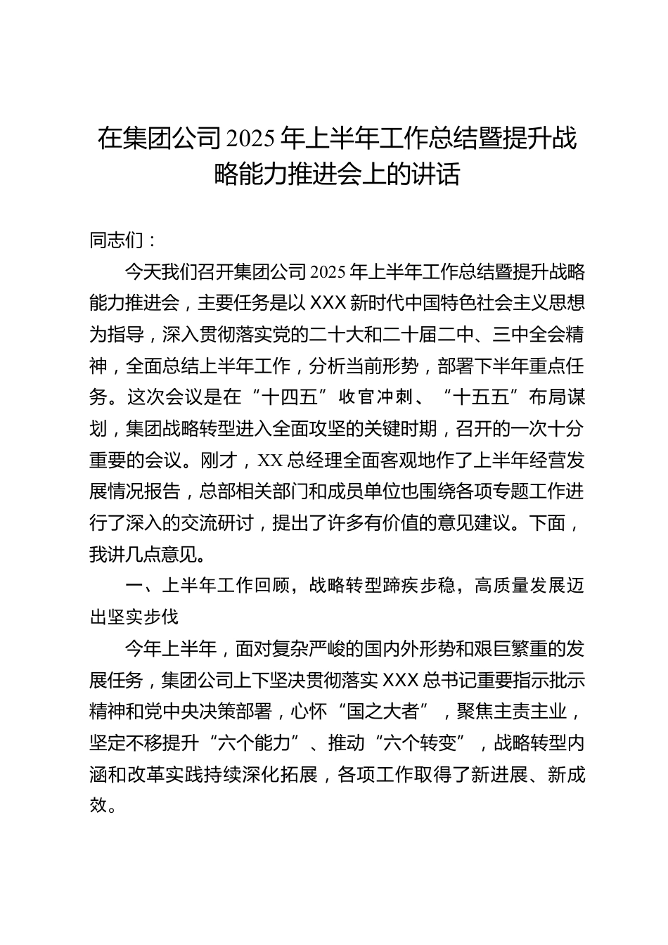 在集團(tuán)公司2025年上半年工作總結(jié)暨提升戰(zhàn)略能力推進(jìn)會(huì)上的講話VIP免費(fèi)