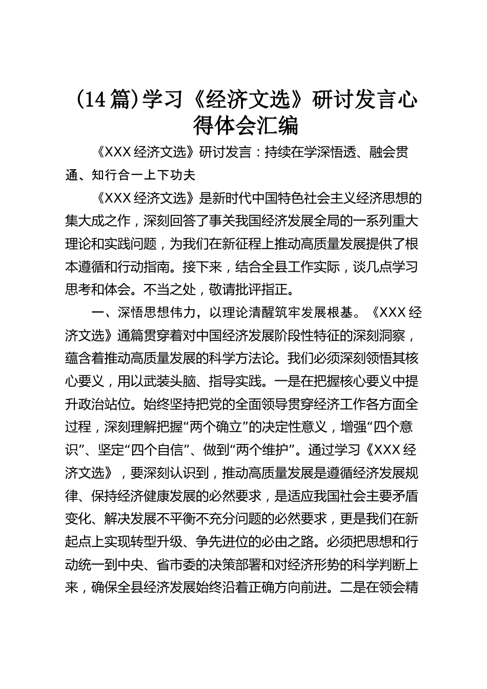 (14篇)學(xué)習(xí)《經(jīng)濟(jì)文選》研討發(fā)言心得體會(huì)匯編