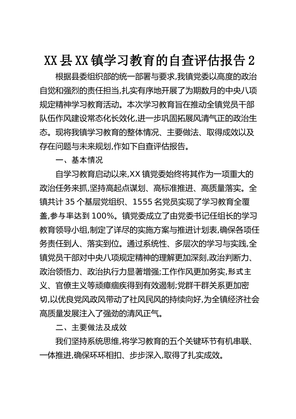 XX縣XX鎮(zhèn)學(xué)習(xí)教育的自查評(píng)估報(bào)告2