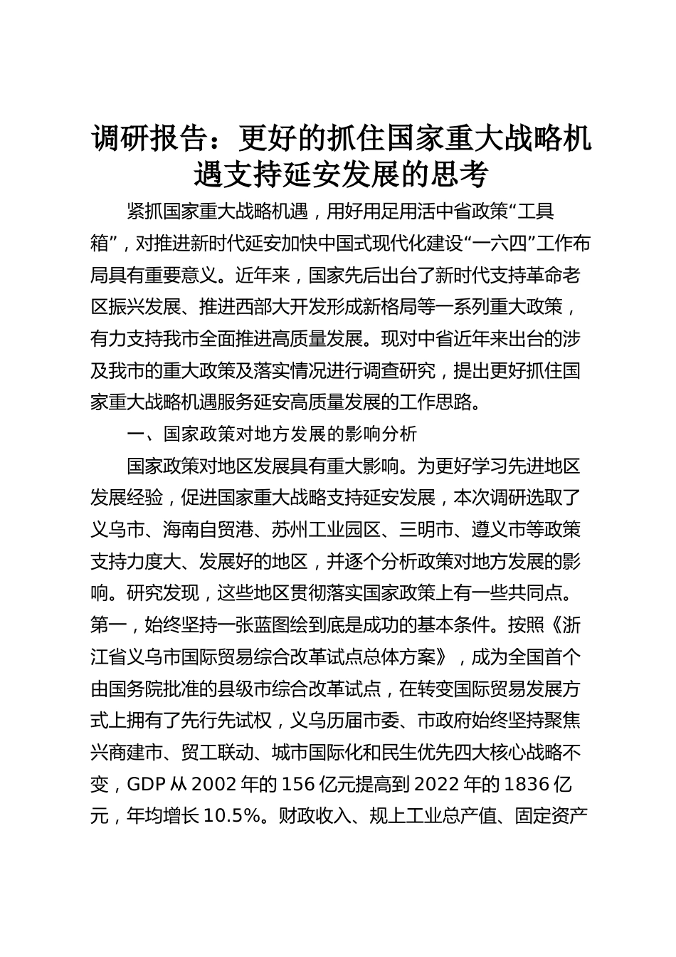 調(diào)研報告:更好的抓住國家重大戰(zhàn)略機遇支持延安發(fā)展的思考