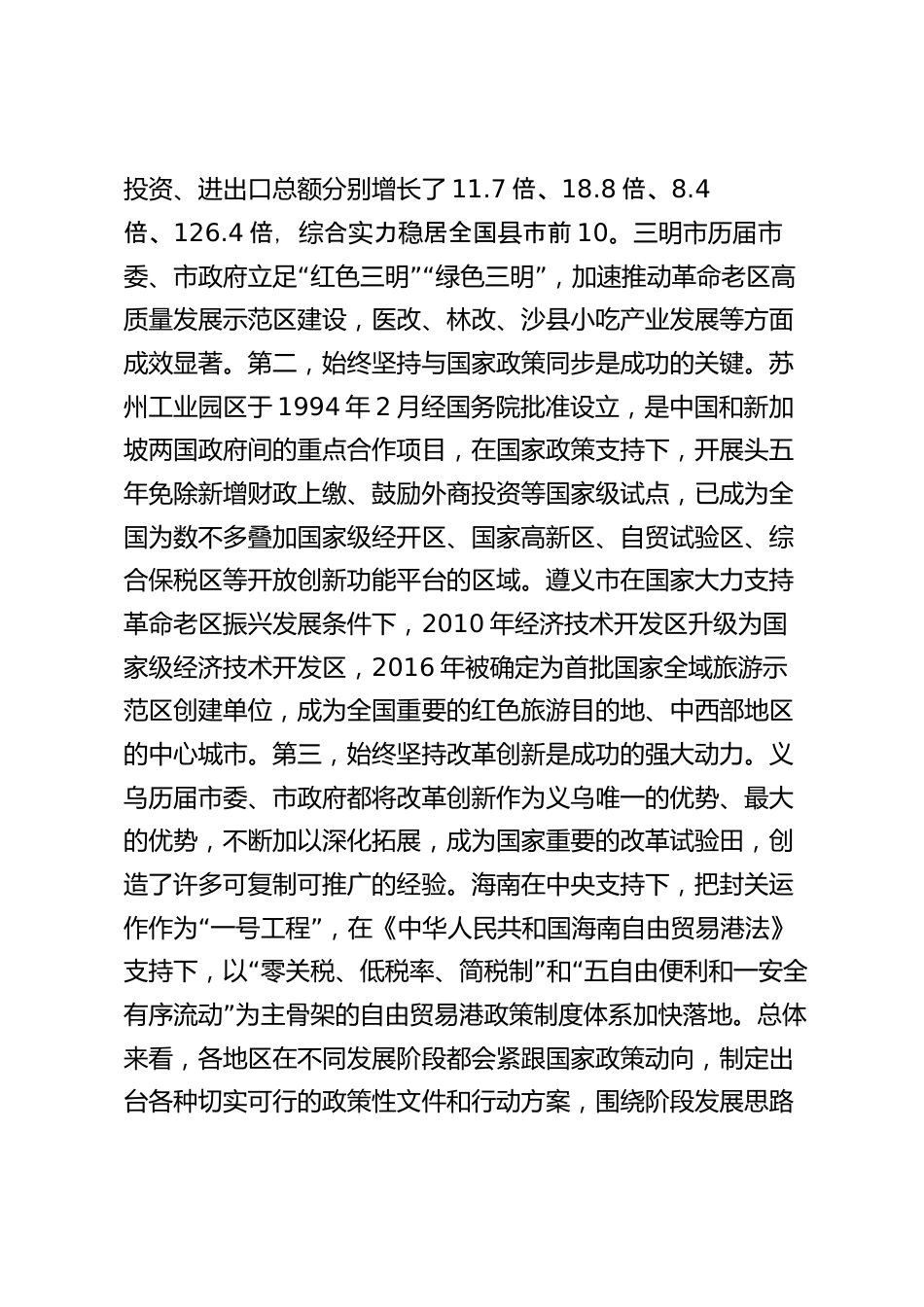調(diào)研報告:更好的抓住國家重大戰(zhàn)略機遇支持延安發(fā)展的思考“緊抓國家重大戰(zhàn)略機遇,用好用足用活中省政策工具”“”箱,對推進新時代延安加快中國式現(xiàn)代化建設一六四工作布局具有重要意義。近年來,國家先后出臺了新時代支持革命老區(qū)振興發(fā)展、推進西部大開發(fā)形成新格局等一系列重大政策,有力支持我市全面推進高質量發(fā)展?,F(xiàn)對中省近年來出臺的涉及我市的重大政策及落實情況進行調(diào)查研究,提出更好抓住國家重大戰(zhàn)略機遇服務延安高質量發(fā)展的工作思路。一、國家政策對地方發(fā)展的影響分析國家政策對地區(qū)發(fā)展具有重大影響。為更好學習先進地區(qū)發(fā)展經(jīng)驗,促進國家重大戰(zhàn)略支...