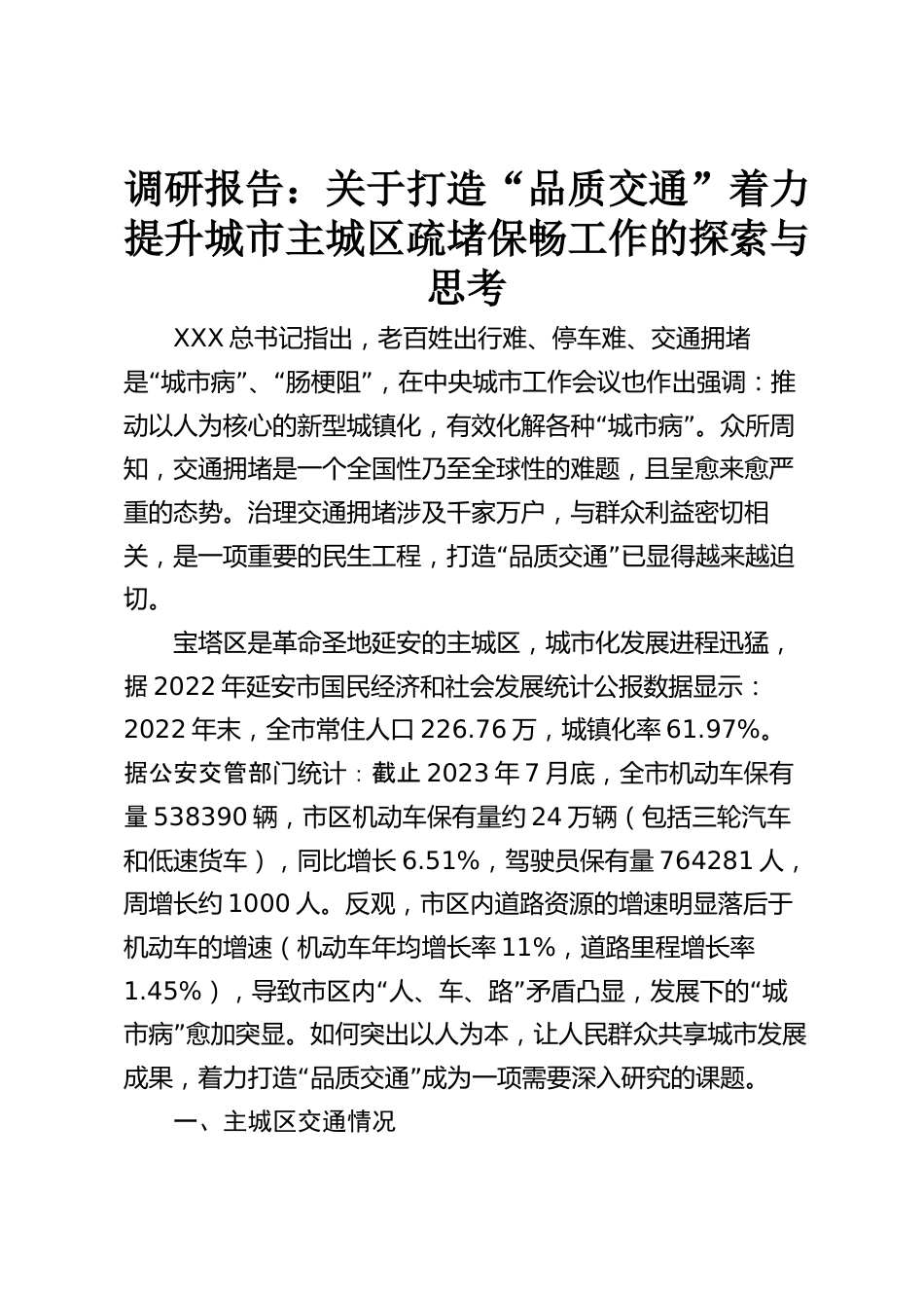 調(diào)研報告:關(guān)于打造“品質(zhì)交通”著力提升城市主城區(qū)疏堵保暢工作的探索與思考