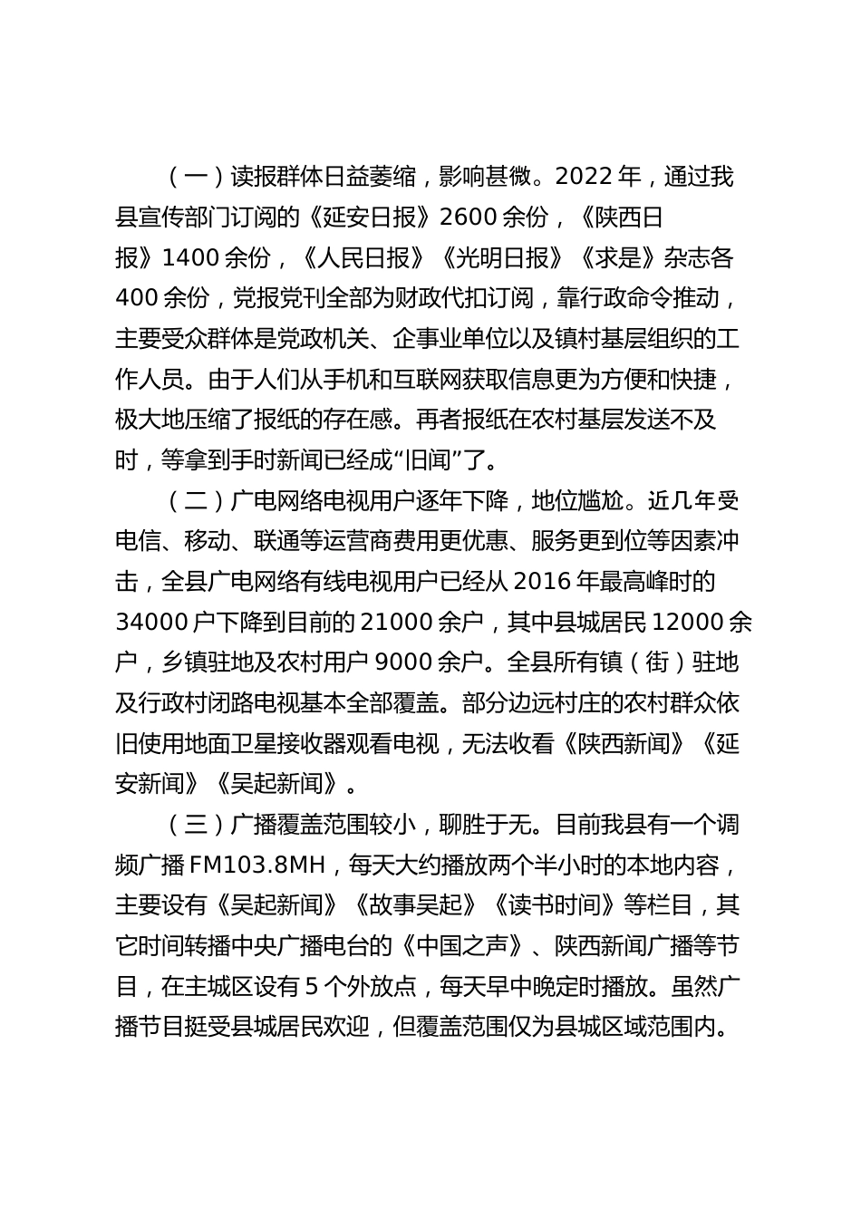 關(guān)于進(jìn)一步推動(dòng)全縣媒體融合發(fā)展的調(diào)研報(bào)告