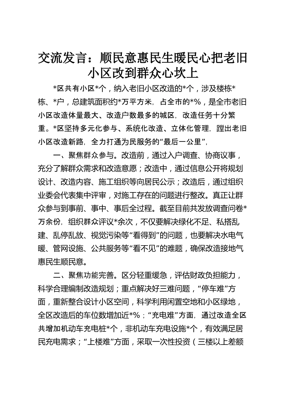 交流發(fā)言:順民意 惠民生 暖民心 把老舊小區(qū)改到群眾心坎上