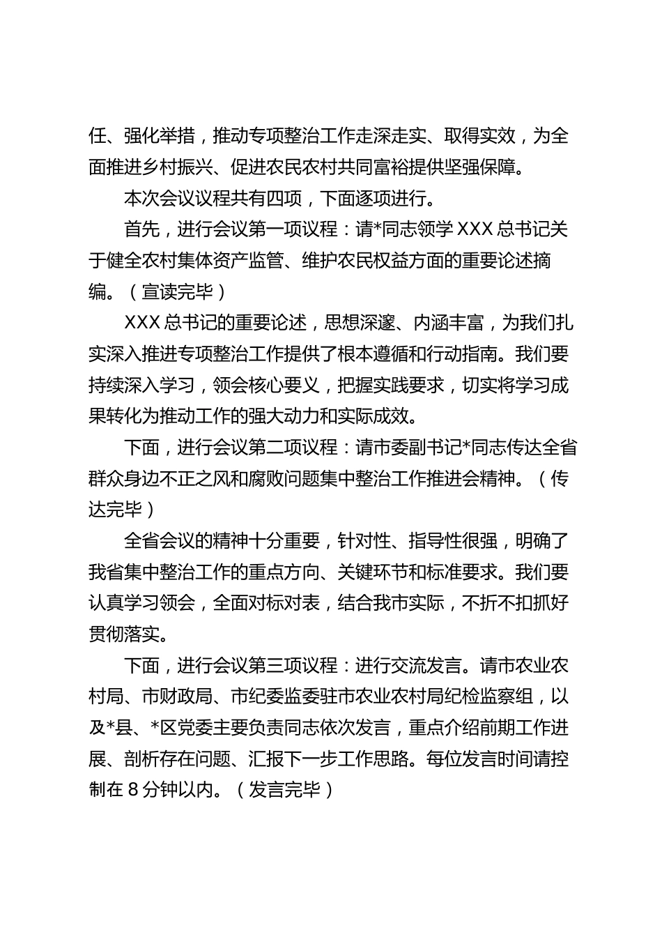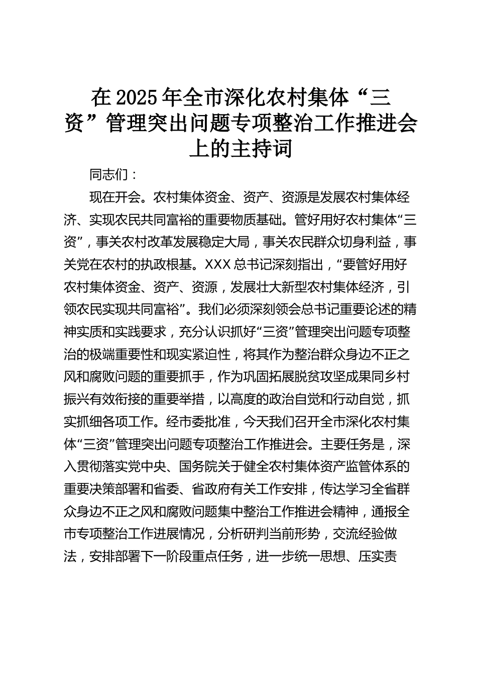 在2025年全市深化農(nóng)村集體“三資”管理突出問題專項整治工作推進(jìn)會上的主持詞