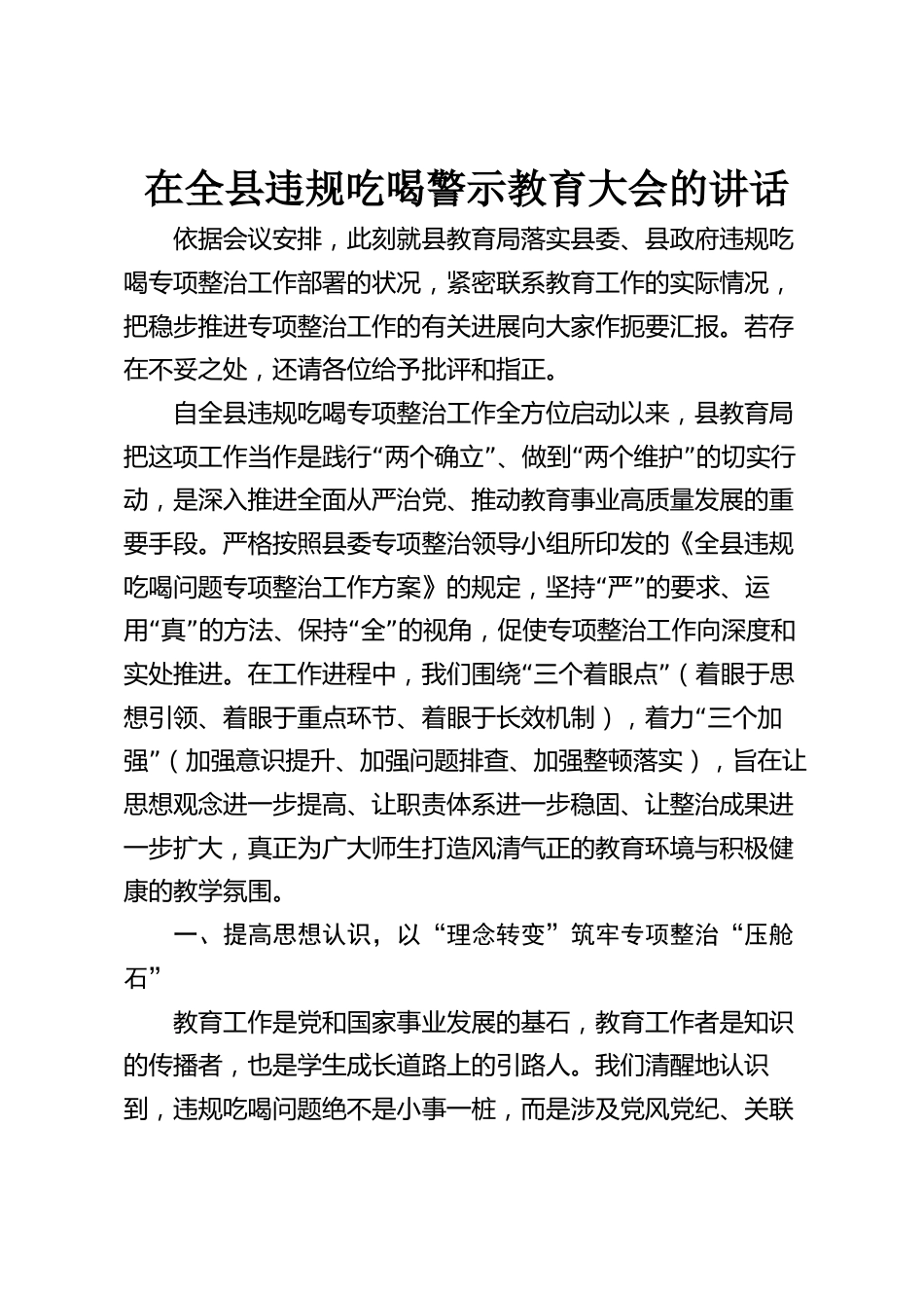在全縣違規(guī)吃喝警示教育大會的講話依據(jù)會議安排,此刻就縣教育局落實縣委、縣政府違規(guī)吃喝專項整治工作部署的狀況,緊密聯(lián)系教育工作的實際情況,把穩(wěn)步推進專項整治工作的有關(guān)進展向大家作扼要匯報。若存在不妥之處,還請各位給予批評和指正。自全縣違規(guī)吃喝專項整治工作全方位啟動以來,縣教育局“”“”把這項工作當(dāng)作是踐行兩個確立、做到兩個維護的切實行動,是深入推進全面從嚴(yán)治黨、推動教育事業(yè)高質(zhì)量發(fā)展的重要手段。嚴(yán)格按照縣委專項整治領(lǐng)導(dǎo)小組所印發(fā)的《全縣違規(guī)“”吃喝問題專項整治工作方案》的規(guī)定,堅持嚴(yán)的要求、運“”“”用真的方法、保持全的視角,...