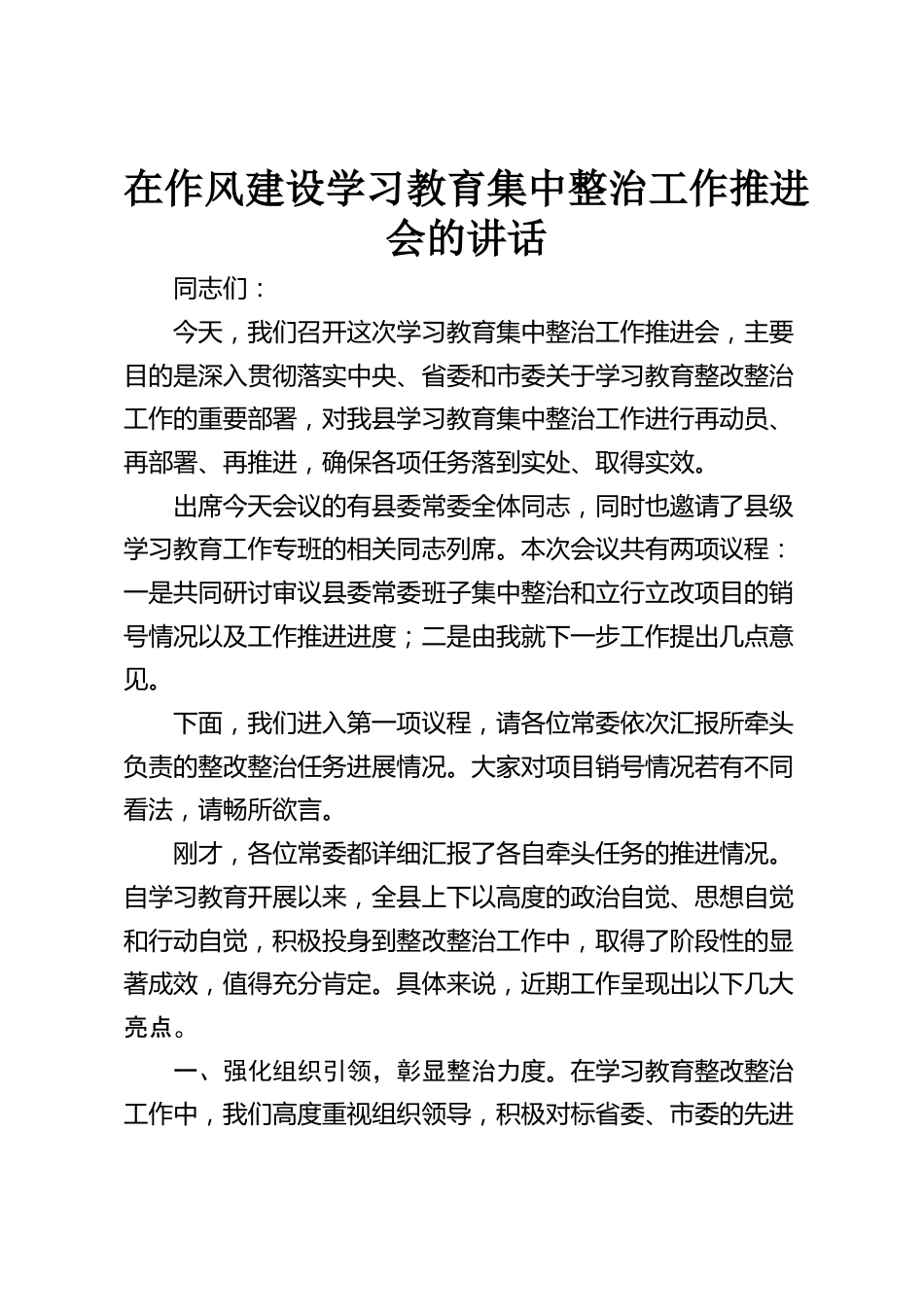 在作風(fēng)建設(shè)學(xué)習(xí)教育集中整治工作推進(jìn)會(huì)的講話