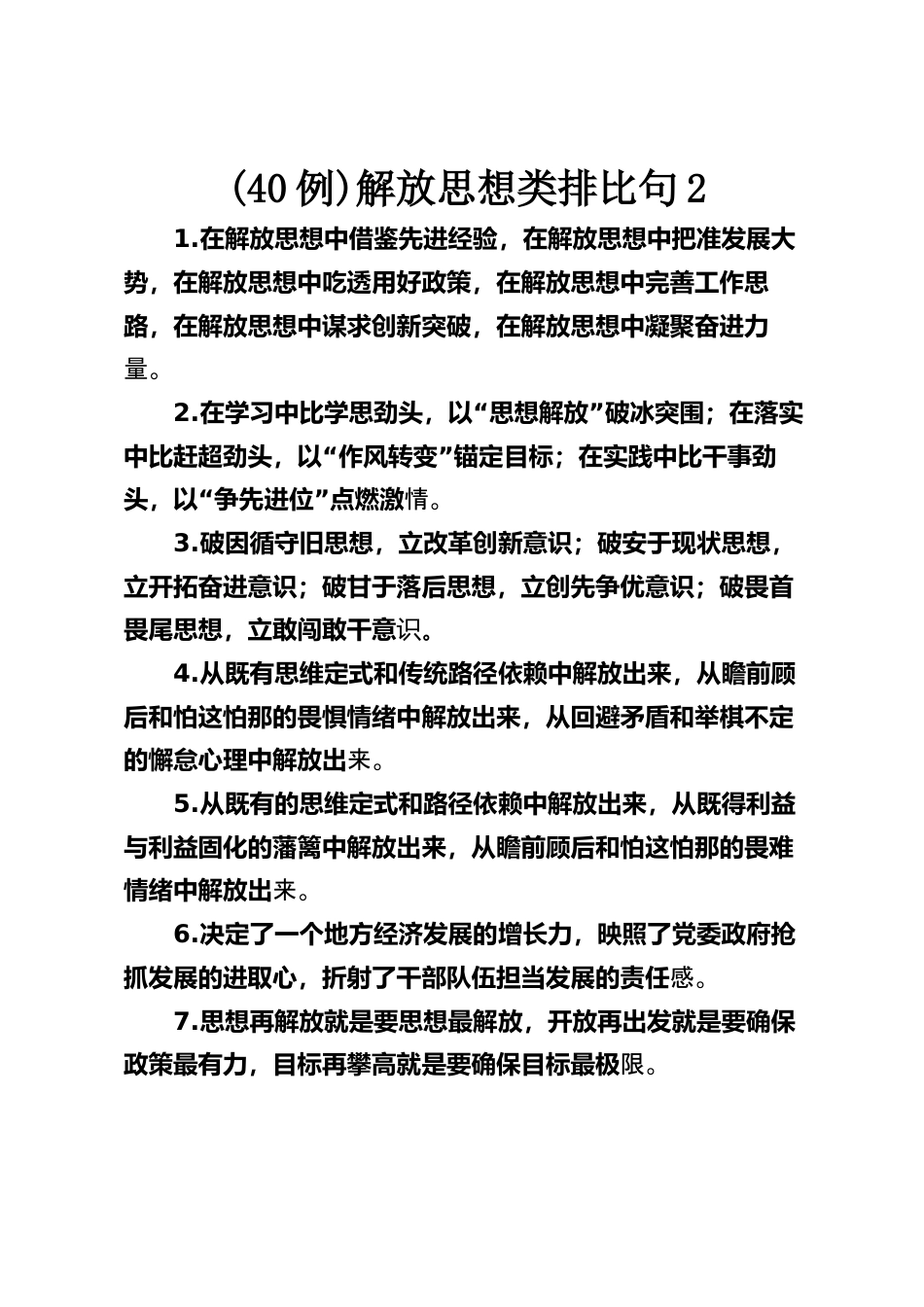 (40例)解放思想類排比句2