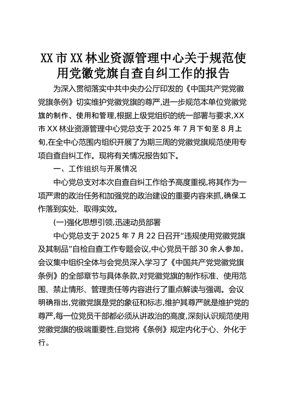 XX市XX林業(yè)資源管理中心關(guān)于規(guī)范使用黨徽黨旗自查自糾工作的報(bào)告