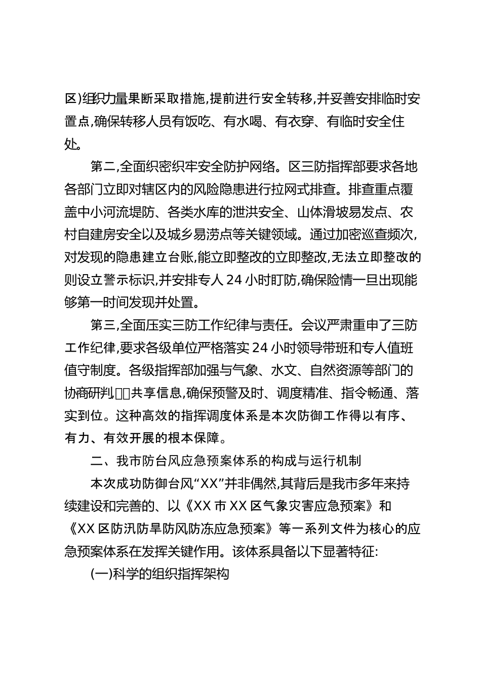 XX市應(yīng)急管理局關(guān)于臺風(fēng)“XX”防御工作及應(yīng)急體系建設(shè)的情況報告