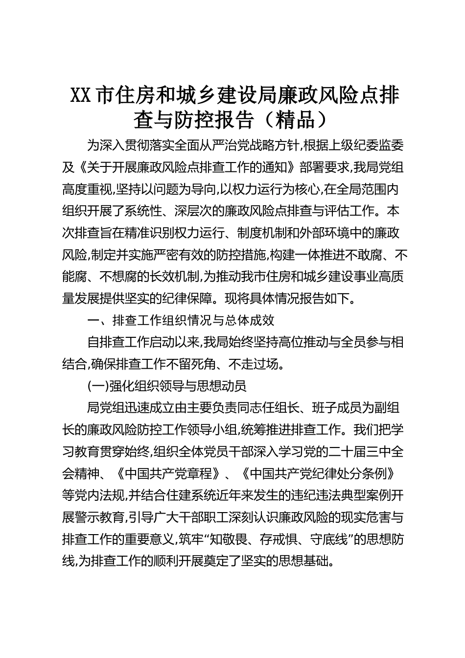 XX市住房和城鄉(xiāng)建設(shè)局廉政風(fēng)險(xiǎn)點(diǎn)排查與防控報(bào)告(精品)