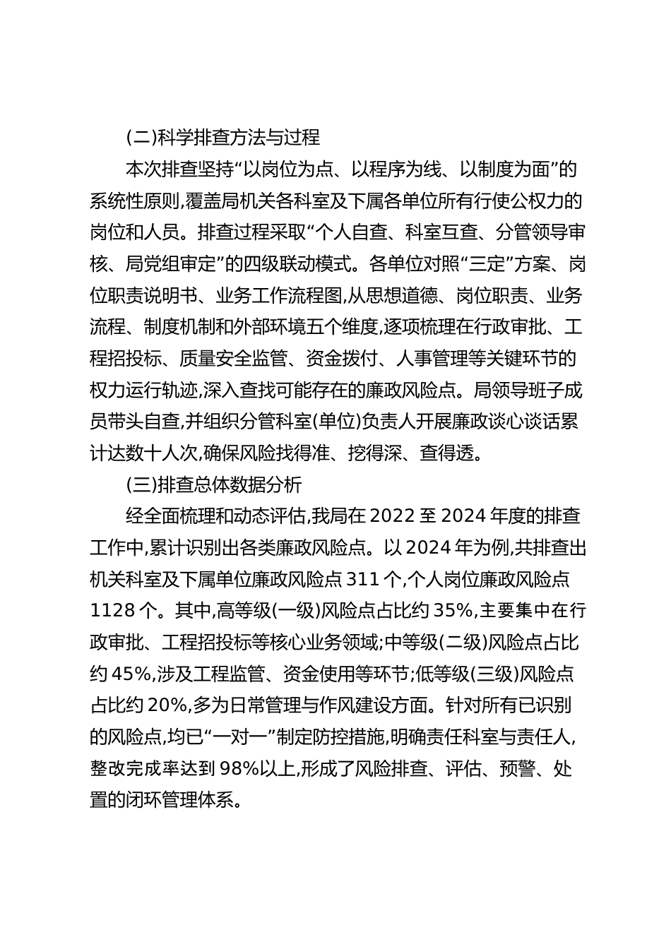 XX市住房和城鄉(xiāng)建設(shè)局廉政風(fēng)險(xiǎn)點(diǎn)排查與防控報(bào)告(精品)為深入貫徹落實(shí)全面從嚴(yán)治黨戰(zhàn)略方針,根據(jù)上級(jí)紀(jì)委監(jiān)委及《關(guān)于開展廉政風(fēng)險(xiǎn)點(diǎn)排查工作的通知》部署要求,我局黨組高度重視,堅(jiān)持以問題為導(dǎo)向,以權(quán)力運(yùn)行為核心,在全局范圍內(nèi)組織開展了系統(tǒng)性、深層次的廉政風(fēng)險(xiǎn)點(diǎn)排查與評(píng)估工作。本次排查旨在精準(zhǔn)識(shí)別權(quán)力運(yùn)行、制度機(jī)制和外部環(huán)境中的廉政風(fēng)險(xiǎn),制定并實(shí)施嚴(yán)密有效的防控措施,構(gòu)建一體推進(jìn)不敢腐、不能腐、不想腐的長(zhǎng)效機(jī)制,為推動(dòng)我市住房和城鄉(xiāng)建設(shè)事業(yè)高質(zhì)量發(fā)展提供堅(jiān)實(shí)的紀(jì)律保障?,F(xiàn)將具體情況報(bào)告如下。一、排查工作組織情況與總體成效自排查工作啟動(dòng)以來,...