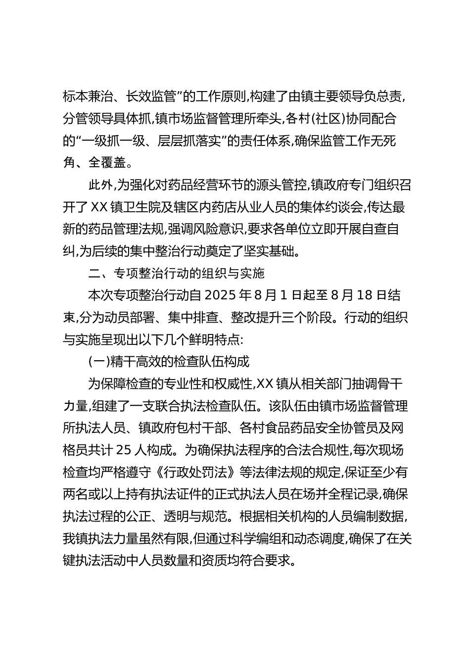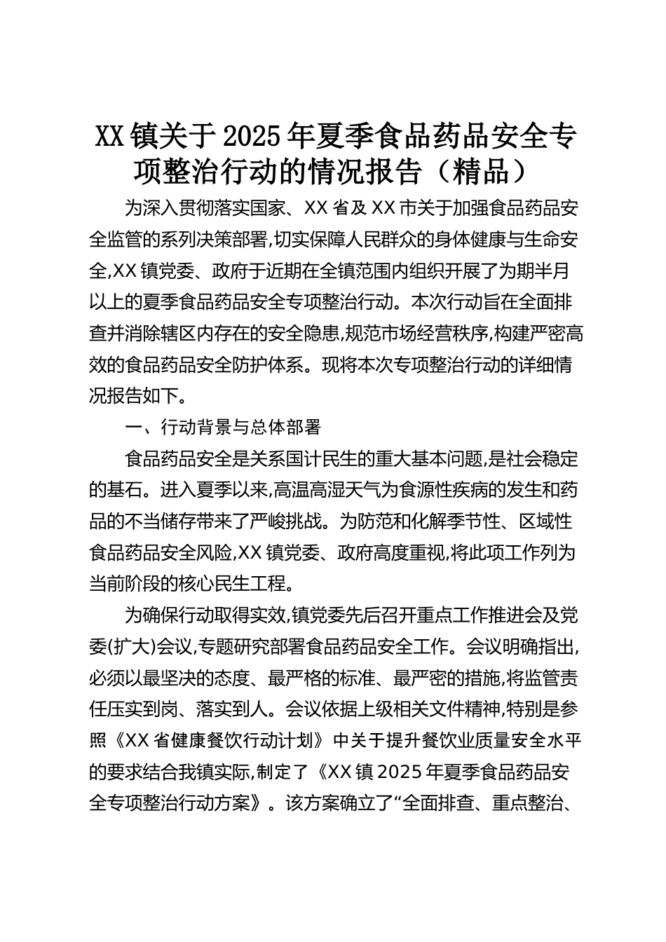 XX鎮(zhèn)關于2025年夏季食品藥品安全專項整治行動的情況報告(精品)