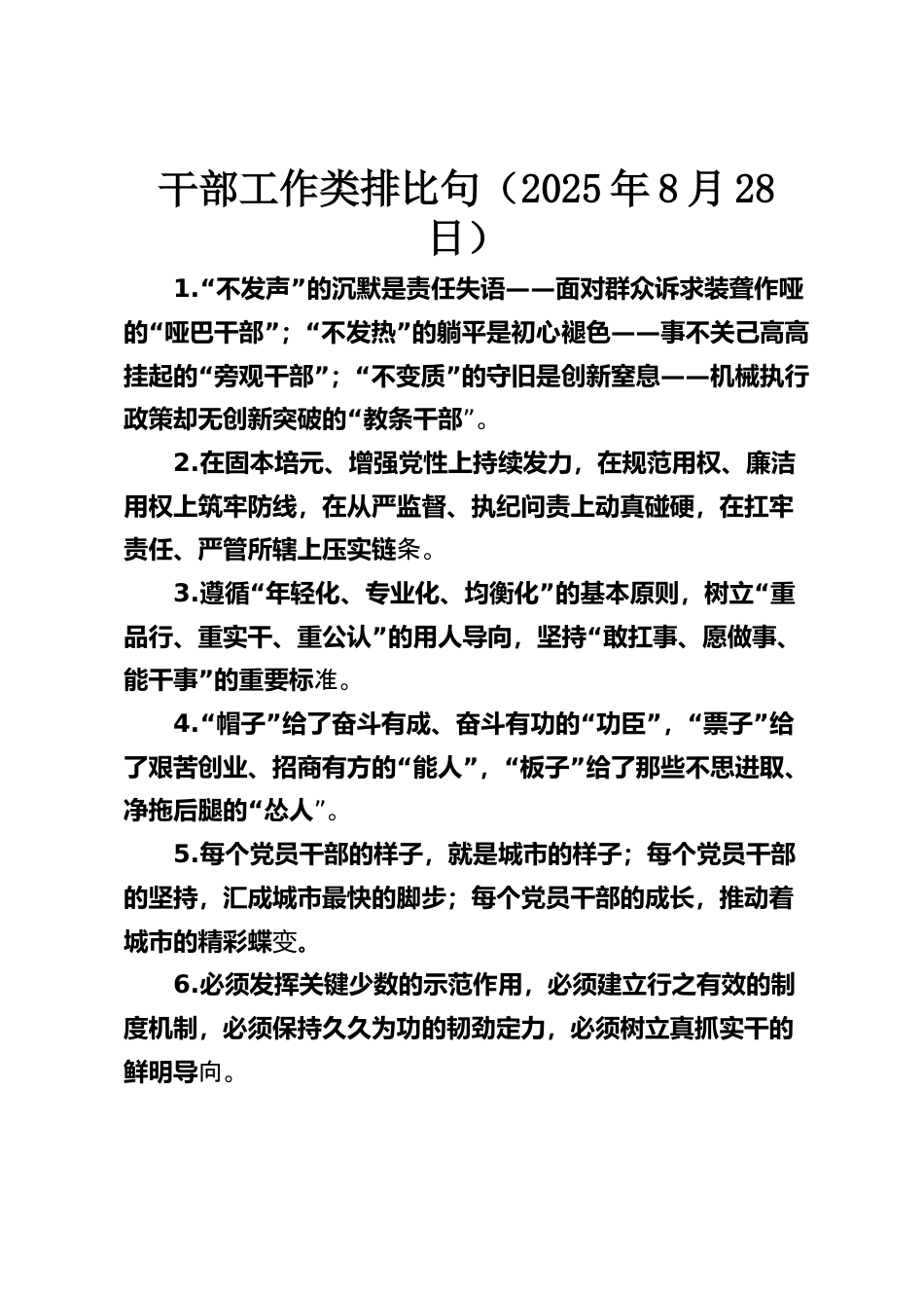 干部工作類排比句(2025年8月28日)