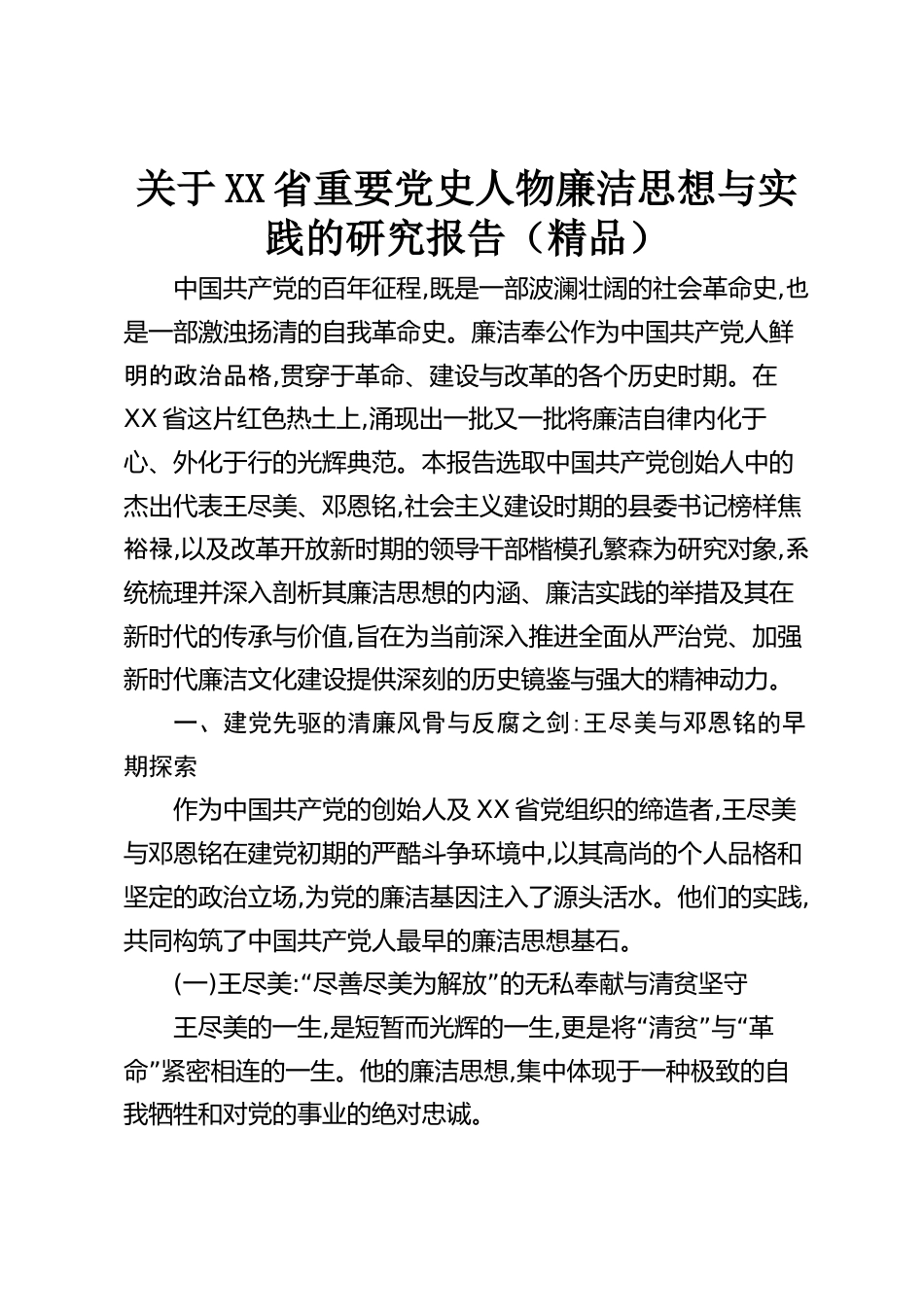 關(guān)于XX省重要黨史人物廉潔思想與實踐的研究報告(精品)