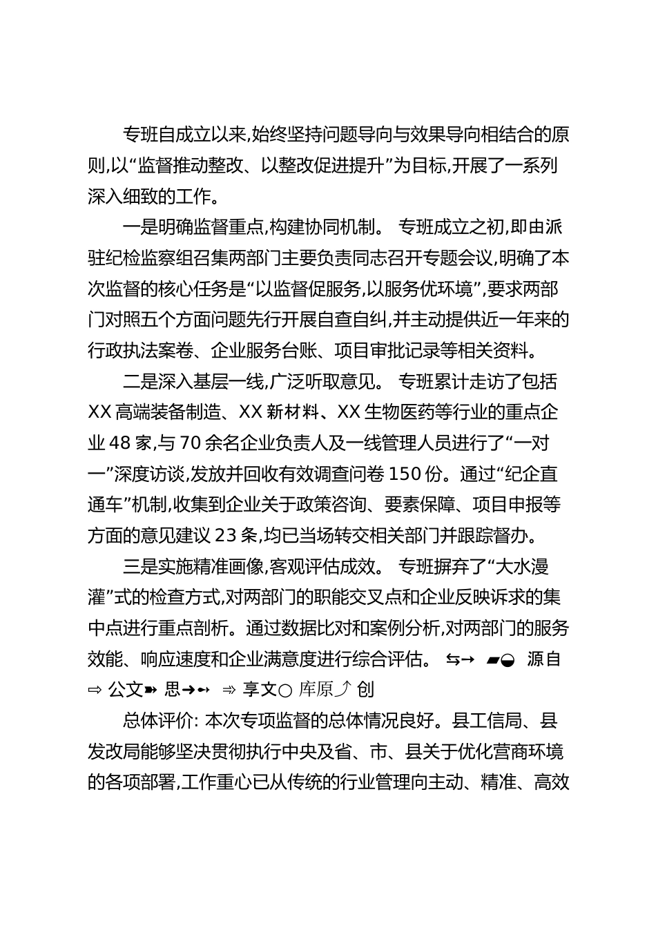 關(guān)于對XX縣工信、發(fā)改部門涉企執(zhí)法及服務(wù)情況的專項監(jiān)督報告(精品)