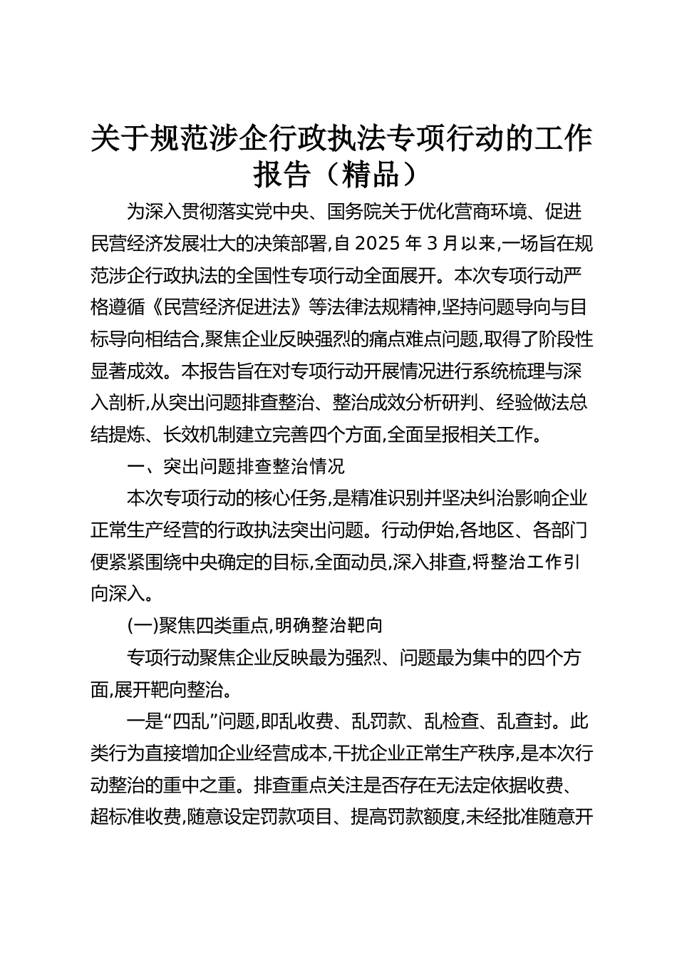 關于規(guī)范涉企行政執(zhí)法專項行動的工作報告(精品)