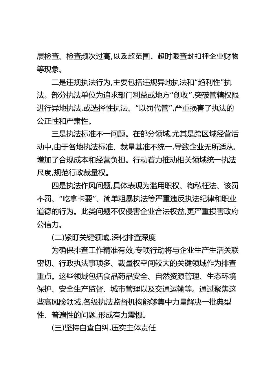 關于規(guī)范涉企行政執(zhí)法專項行動的工作報告(精品)為深入貫徹落實黨中央、國務院關于優(yōu)化營商環(huán)境、促進民營經濟發(fā)展壯大的決策部署,自2025年3月以來,一場旨在規(guī)范涉企行政執(zhí)法的全國性專項行動全面展開。本次專項行動嚴格遵循《民營經濟促進法》等法律法規(guī)精神,堅持問題導向與目標導向相結合,聚焦企業(yè)反映強烈的痛點難點問題,取得了階段性顯著成效。本報告旨在對專項行動開展情況進行系統(tǒng)梳理與深入剖析,從突出問題排查整治、整治成效分析研判、經驗做法總結提煉、長效機制建立完善四個方面,全面呈報相關工作。一、突出問題排查整治情況本次專項行動的核心任務,是精準識...