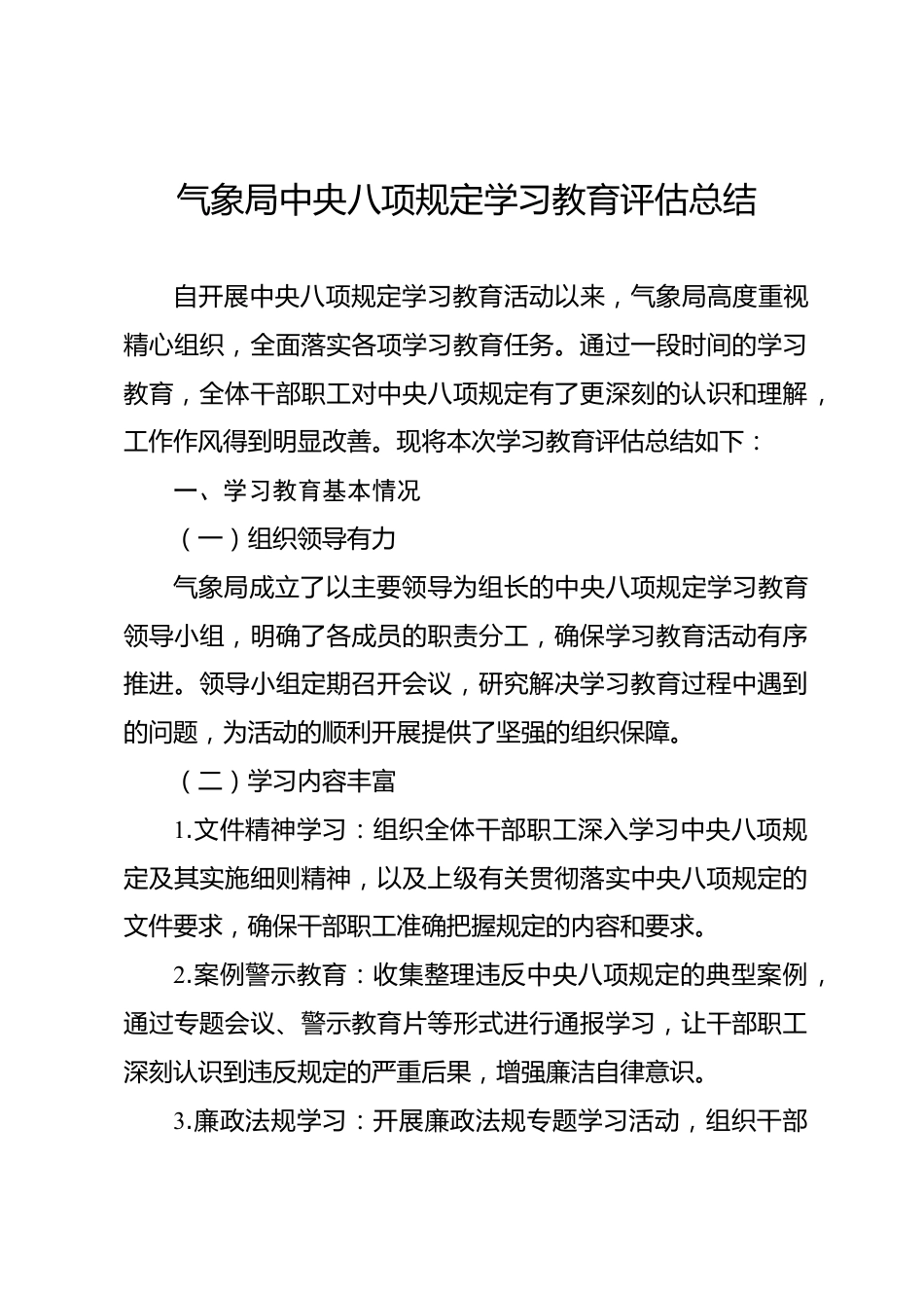 氣象局中央八項規(guī)定學(xué)習(xí)教育評估總結(jié)