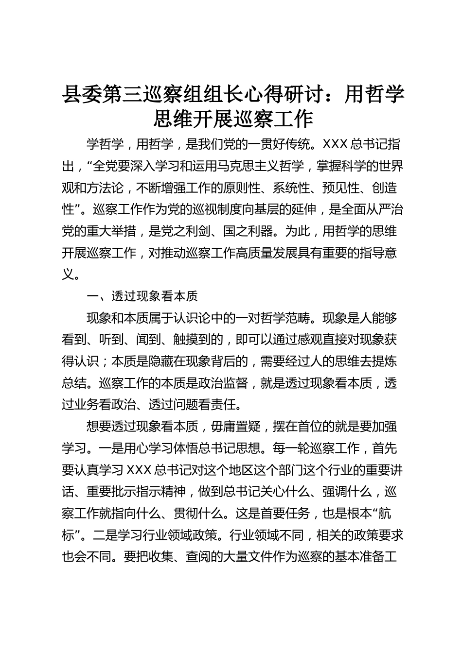 縣委第三巡察組組長(zhǎng)心得研討:用哲學(xué)思維開(kāi)展巡察工作
