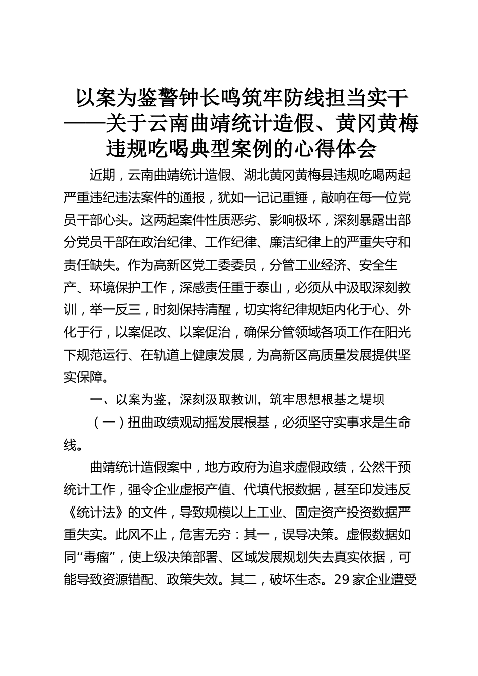以案為鑒 警鐘長鳴 筑牢防線 擔(dān)當(dāng)實(shí)干——關(guān)于云南曲靖統(tǒng)計(jì)造假、黃岡黃梅違規(guī)吃喝典型案例的心得體會(huì)