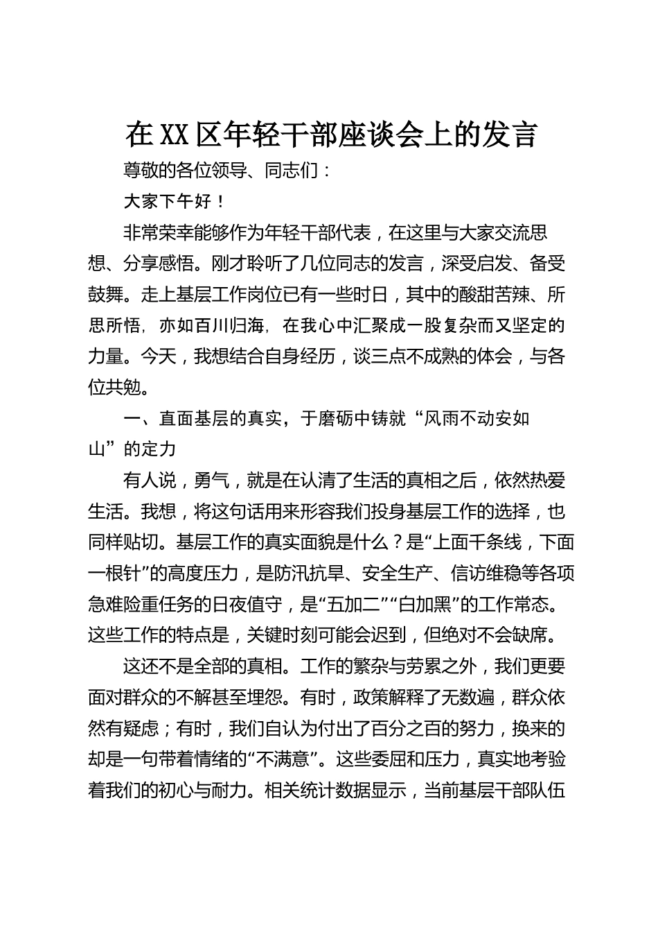 在XX區(qū)年輕干部座談會(huì)上的發(fā)言