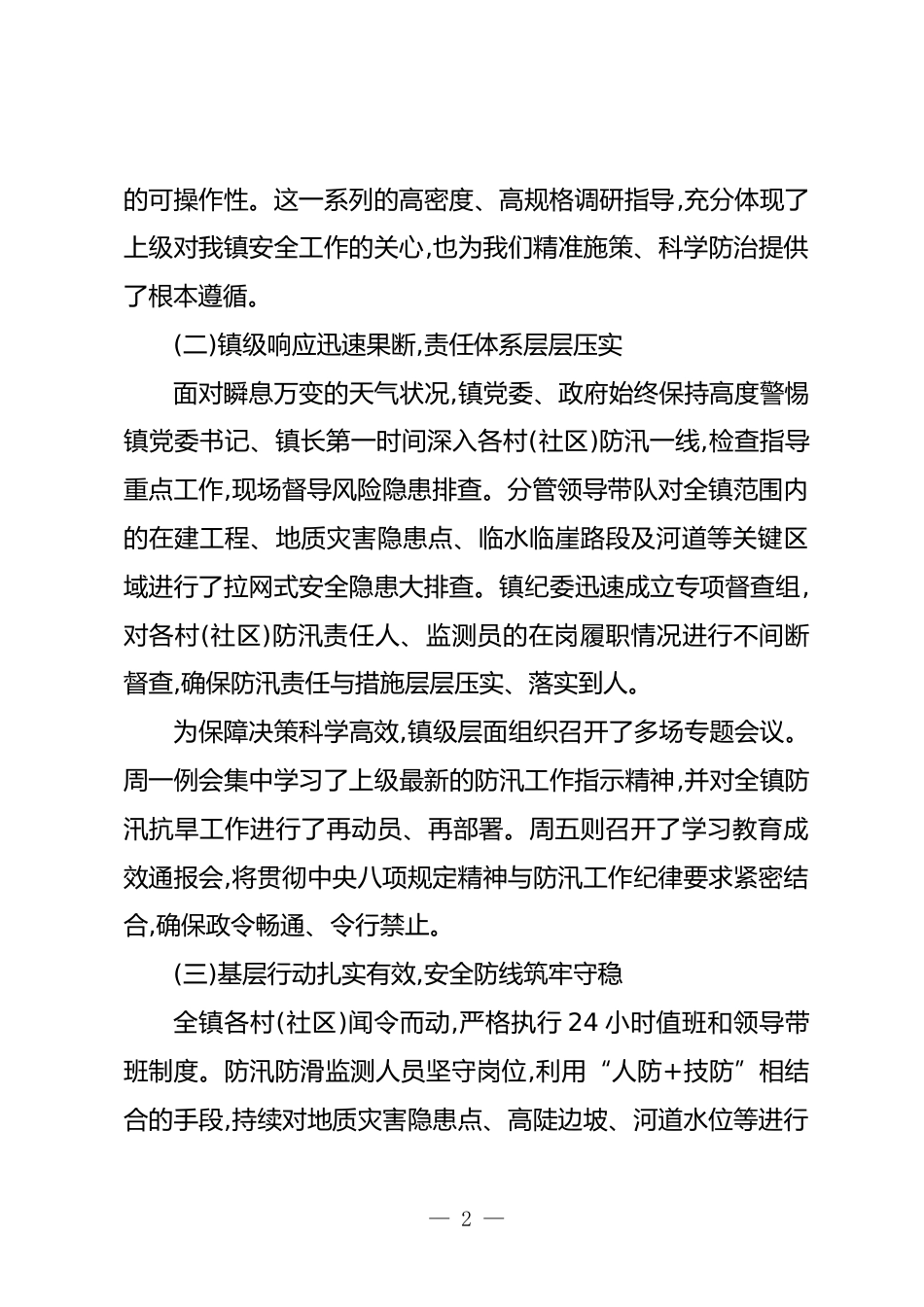 XX鎮(zhèn)關(guān)于2025年8月第一周重點(diǎn)工作開展情況的總結(jié)報(bào)告上一周,面對(duì)汛情與旱情交織的嚴(yán)峻挑戰(zhàn),在XX省、XX市及XX縣各級(jí)領(lǐng)導(dǎo)的親切關(guān)懷與精準(zhǔn)指導(dǎo)下,XX鎮(zhèn)黨委、政府堅(jiān)持以人民為中心的發(fā)展思想,帶領(lǐng)全鎮(zhèn)機(jī)關(guān)干部與各村(社區(qū))工作力量,迎難而上,協(xié)同作戰(zhàn),各項(xiàng)工作均取得了扎實(shí)成效,為全鎮(zhèn)經(jīng)濟(jì)社會(huì)穩(wěn)定發(fā)展奠定了堅(jiān)實(shí)基礎(chǔ)。一、統(tǒng)籌部署,高位推動(dòng),全面夯實(shí)防汛抗旱安全屏障本周,防汛抗旱工作是我鎮(zhèn)工作的重中之重。我們堅(jiān)持底線思維,以“時(shí)時(shí)放心不下”的責(zé)任感,構(gòu)建了上下聯(lián)動(dòng)、橫向到邊、縱向到底的立體化防災(zāi)減災(zāi)工作體系。(一)上級(jí)指導(dǎo)精準(zhǔn)有力,工作部署全面落實(shí)上級(jí)部門的...
