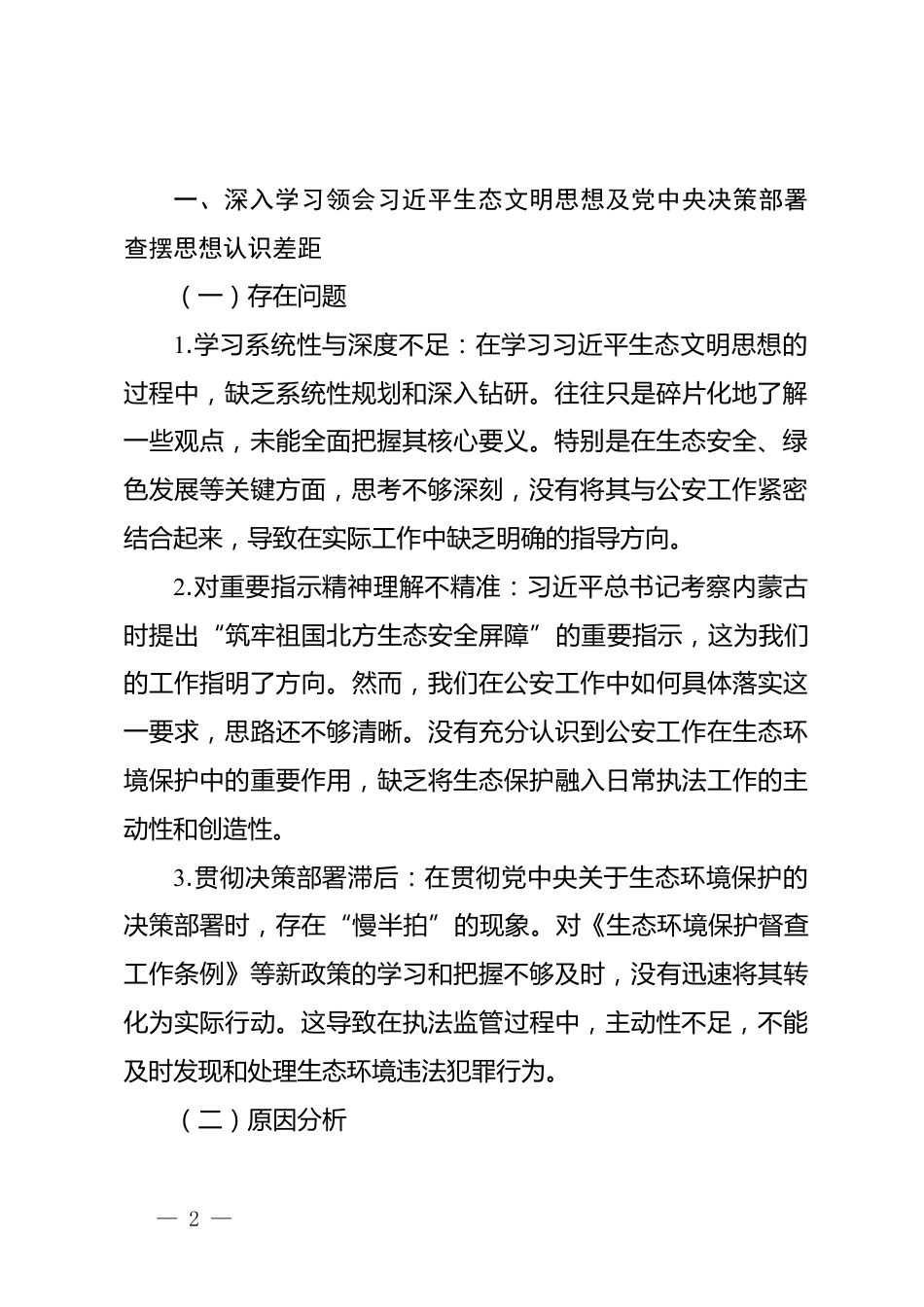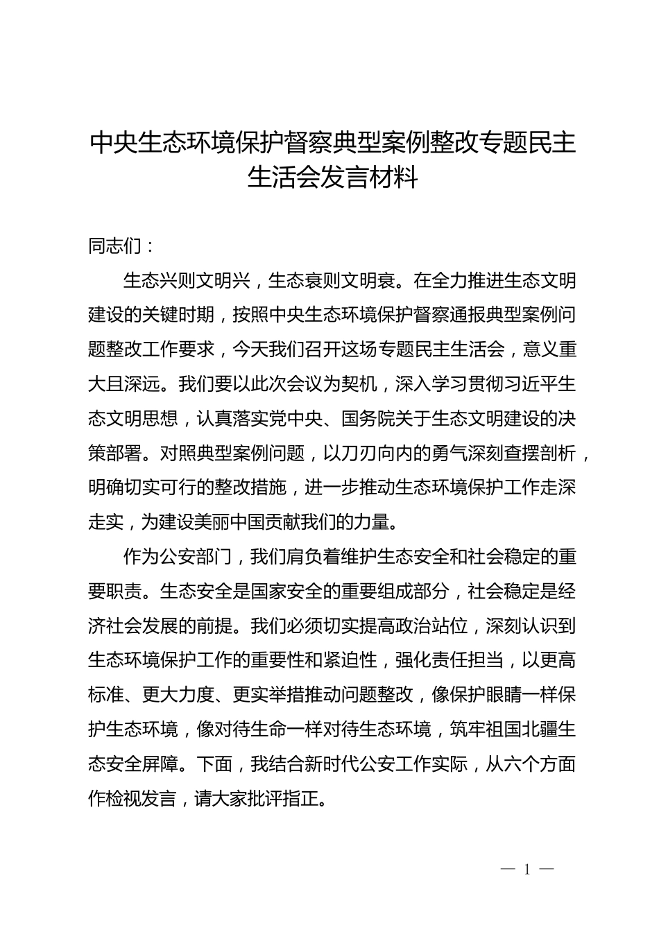 公安部門在中央生態(tài)環(huán)境保護(hù)督察典型案例整改專題民主生活會發(fā)言材料