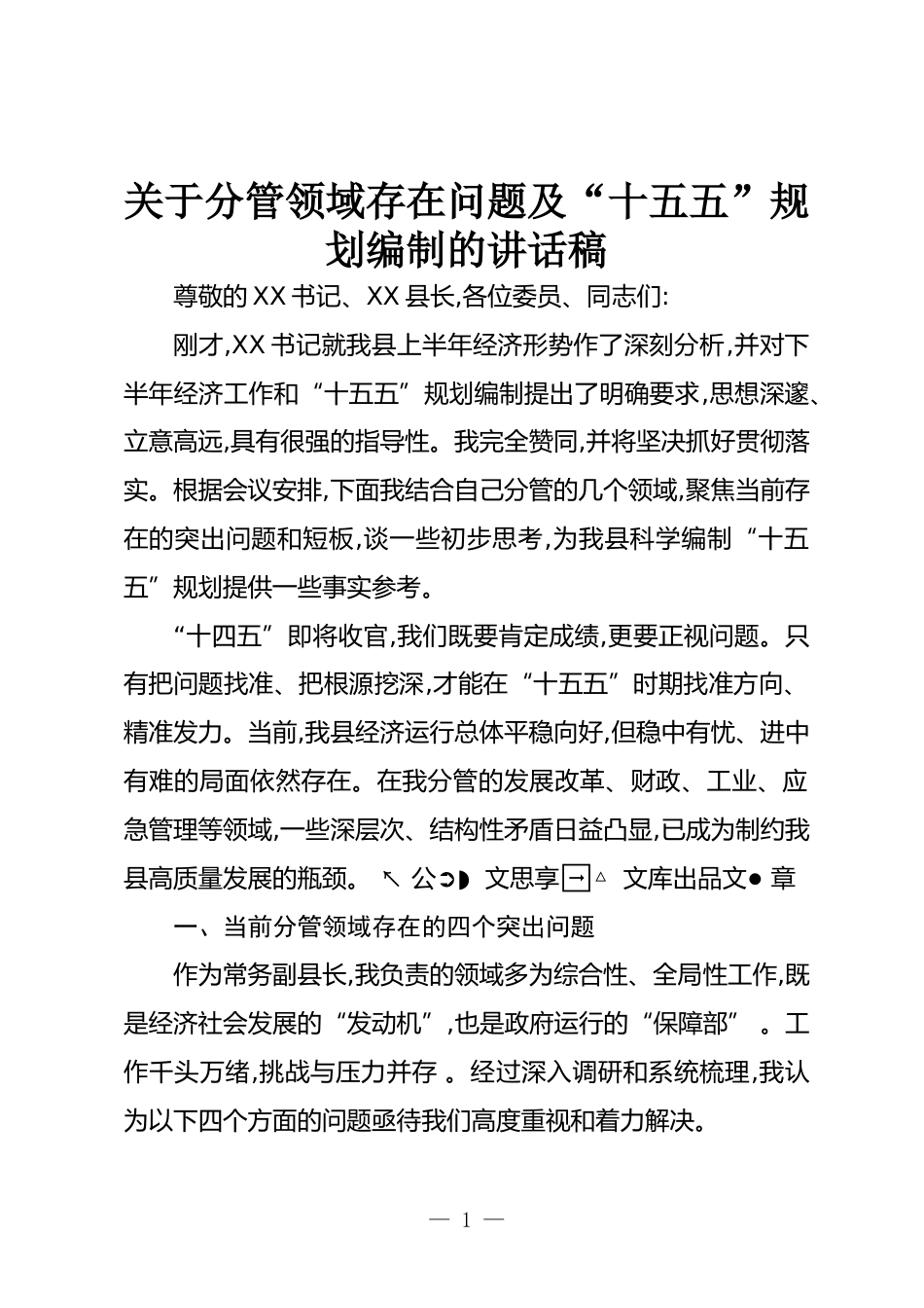 關(guān)于分管領(lǐng)域存在問題及“十五五”規(guī)劃編制的講話稿VIP免費