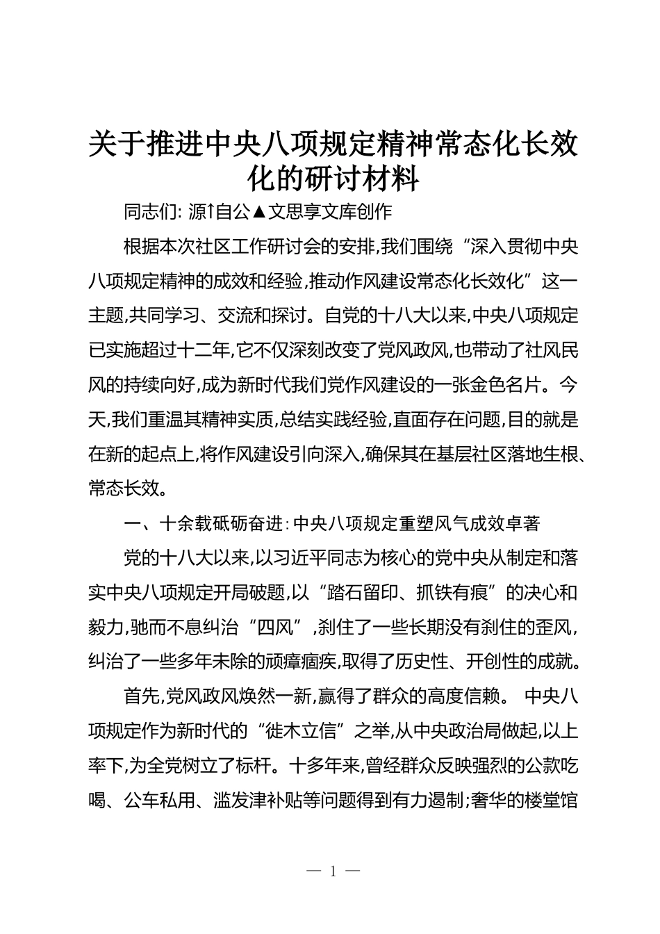 關(guān)于推進(jìn)中央八項(xiàng)規(guī)定精神常態(tài)化長(zhǎng)效化的研討材料