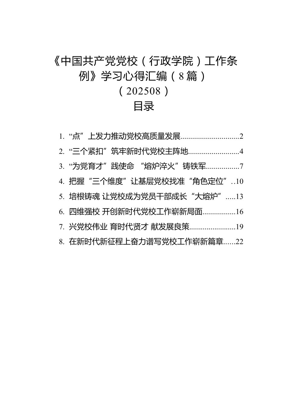 《中國共產(chǎn)黨黨校(行政學(xué)院)工作條例》學(xué)習(xí)心得匯編(8篇)(202508)