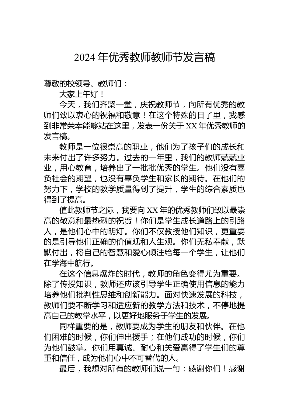 2024年優(yōu)秀教師教師節(jié)發(fā)言稿VIP免費(fèi)