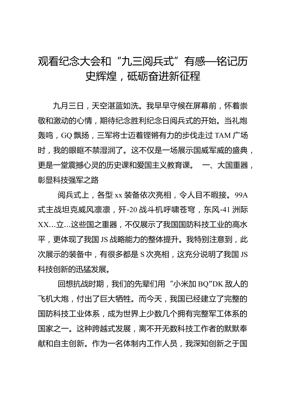 觀看紀念大會和“九三閱兵式”有感—銘記歷史輝煌,砥礪奮進新征程