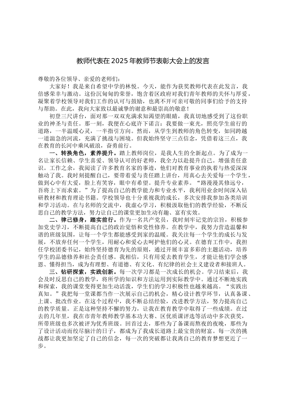 教師代表在2025年教師節(jié)表彰大會上的發(fā)言VIP免費