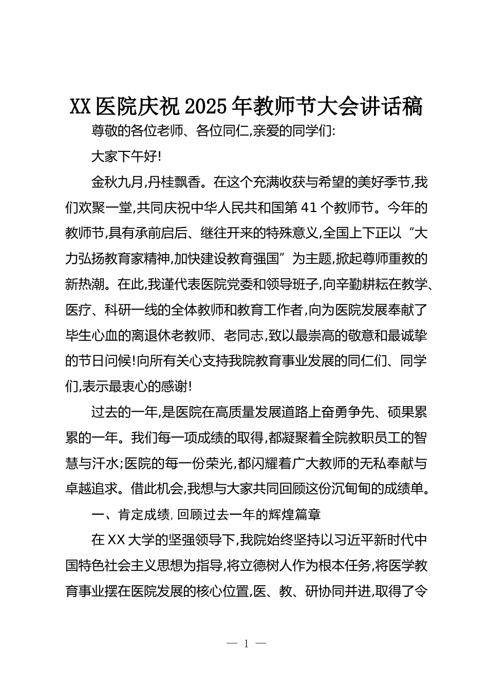 XX醫(yī)院慶祝2025年教師節(jié)大會講話稿